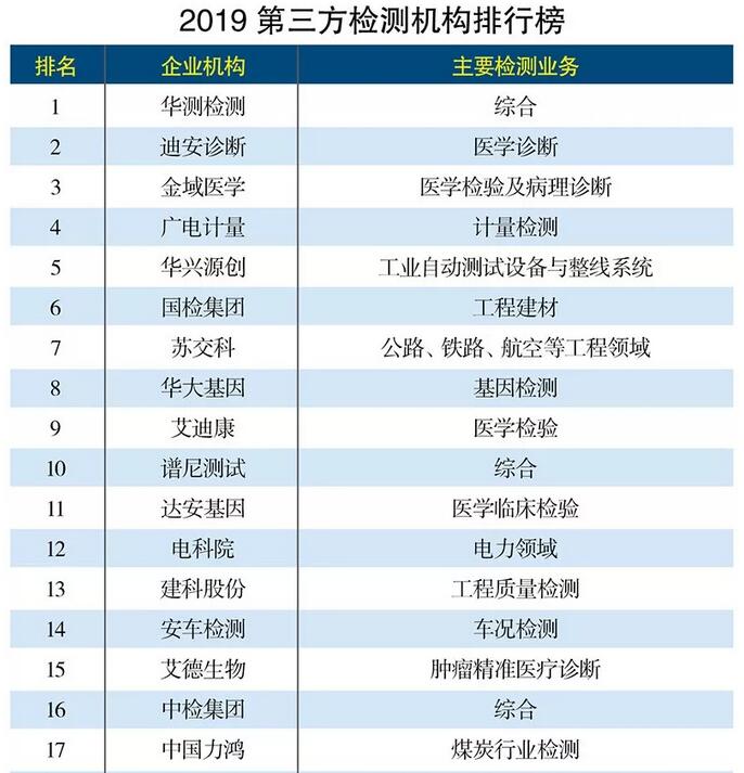 新澤小編盤點一下:2019年第三方檢測機構(gòu)的50強