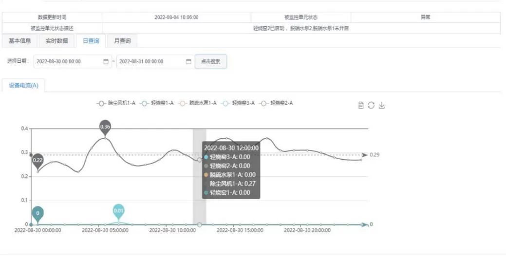 2022年9月2日,通過對自動在線監(jiān)測平臺異常數(shù)據(jù)線索分析發(fā)現(xiàn),營口某某材料有限公司(重點排污單位)全天有單獨小時時段氧含量在18%以下,全天平均流量在10000m3/h以上,疑為生產(chǎn)數(shù)據(jù),同時調(diào)用電監(jiān)控平臺數(shù)據(jù)顯示,該單位窯爐處于停產(chǎn)狀態(tài),在線數(shù)據(jù)與用電工況數(shù)據(jù)不符。大石橋生態(tài)環(huán)境分局執(zhí)法人員立即對該單位進行現(xiàn)場核查。