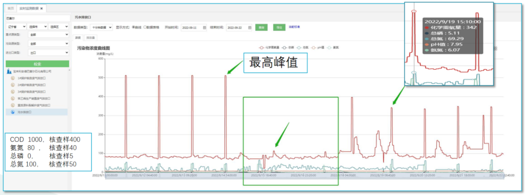 盤錦市生態(tài)環(huán)境局通過實戰(zhàn)比武,建立與公安前端信息會商機制,發(fā)揮各專業(yè)和職能優(yōu)勢對在線監(jiān)控線索排查和分析研判,實施精準打擊在線數(shù)據(jù)違法實戰(zhàn)行動。2022年9月執(zhí)法人員對在線數(shù)據(jù)異常線索深入調(diào)查中發(fā)現(xiàn),某石化有限公司污染源監(jiān)控平臺污染物濃度歷史數(shù)據(jù)曲線圖明顯異常。梳理線索后,執(zhí)法人員會同公安機關立即以“四不兩直”的方式進行現(xiàn)場檢查。通過現(xiàn)場檢查發(fā)現(xiàn),該企業(yè)存在出現(xiàn)故障不能及時維護到位,導致儀器長時間不能正常運行檢測等8項不正常運行自動監(jiān)控設施問題。經(jīng)過現(xiàn)場手工監(jiān)測比對分析,多項監(jiān)測數(shù)據(jù)比對結(jié)果超出標準范圍。目前,轄區(qū)執(zhí)法大隊已對存在環(huán)境問題立案調(diào)查。