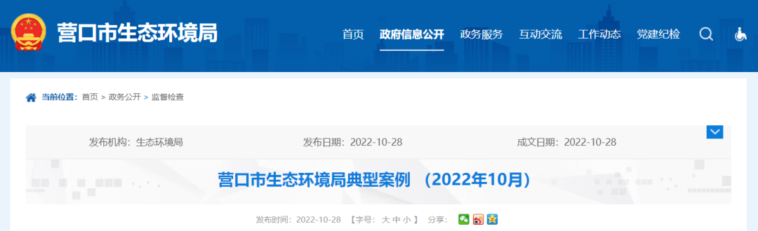 營口市生態(tài)環(huán)境局典型案例 (2022年10月)