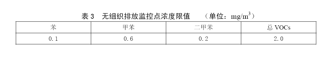 無組織排放應(yīng)執(zhí)行表3的無組織排放監(jiān)控點(diǎn)濃度限值。