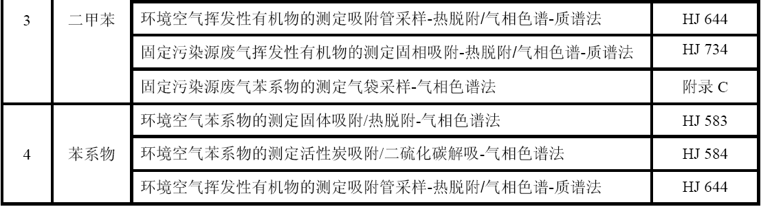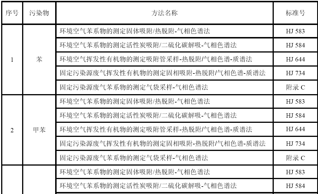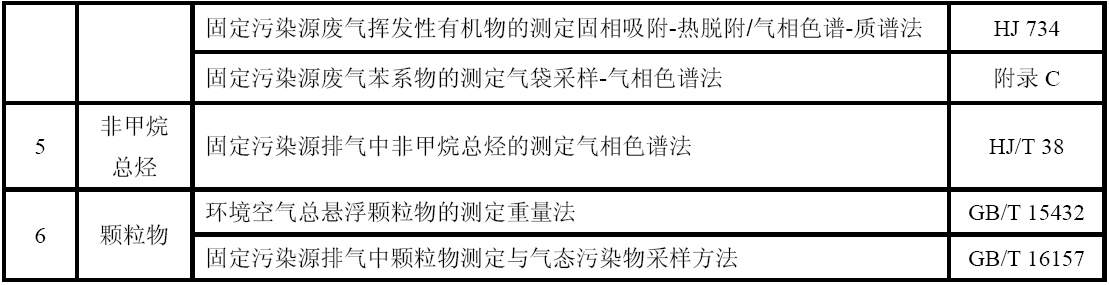 GB 16297 大氣污染物綜合排放標(biāo)準(zhǔn) GB 24409 汽車(chē)涂料中有害物質(zhì)限量 GB/T 15089 機(jī)動(dòng)車(chē)輛及掛車(chē)分類(lèi) GB/T15432 環(huán)境空氣總懸浮顆粒物的測(cè)定重量法 GB/T 16157 固定污染源排氣中顆粒物測(cè)定與氣態(tài)污染物采樣方法 HJ 583  環(huán)境空氣苯系物的測(cè)定固體吸附/熱脫附-氣相色譜法 HJ 584   環(huán)境空氣苯系物的測(cè)定活性炭吸附/二硫化碳解吸-氣相色譜法 HJ 644      環(huán)境空氣揮發(fā)性有機(jī)物的測(cè)定吸附管采樣-熱脫附/氣相色譜-質(zhì)譜法 HJ 732  固定污染源廢氣揮發(fā)性有機(jī)物的采樣氣袋法 HJ 734  固定污染源廢氣揮發(fā)性有機(jī)物的測(cè)定固相吸附-熱脫附/氣相色譜-質(zhì)譜法 HJ/T 38  固定污染源排氣中非甲烷總烴的測(cè)定氣相色譜法 HJ/T 55  大氣污染物無(wú)組織排放監(jiān)測(cè)技術(shù)導(dǎo)則 HJ/T 75   固定污染源煙氣排放連續(xù)監(jiān)測(cè)技術(shù)規(guī)范(試行) HJ/T 194  環(huán)境空氣質(zhì)量手工監(jiān)測(cè)技術(shù)規(guī)范 HJ/T 293  清潔生產(chǎn)標(biāo)準(zhǔn)汽車(chē)制造業(yè)(涂裝) HJ/T 397  固定源廢氣監(jiān)測(cè)技術(shù)規(guī)范 《建設(shè)項(xiàng)目環(huán)境保護(hù)設(shè)施竣工驗(yàn)收監(jiān)測(cè)技術(shù)要求(試行)》(環(huán)發(fā)(2000)38號(hào))