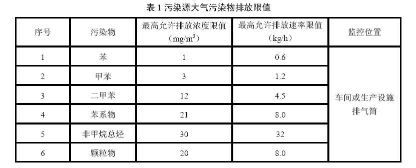 污染源大氣污染物排放濃度和排放速率限值應(yīng)符合表1規(guī)定。
