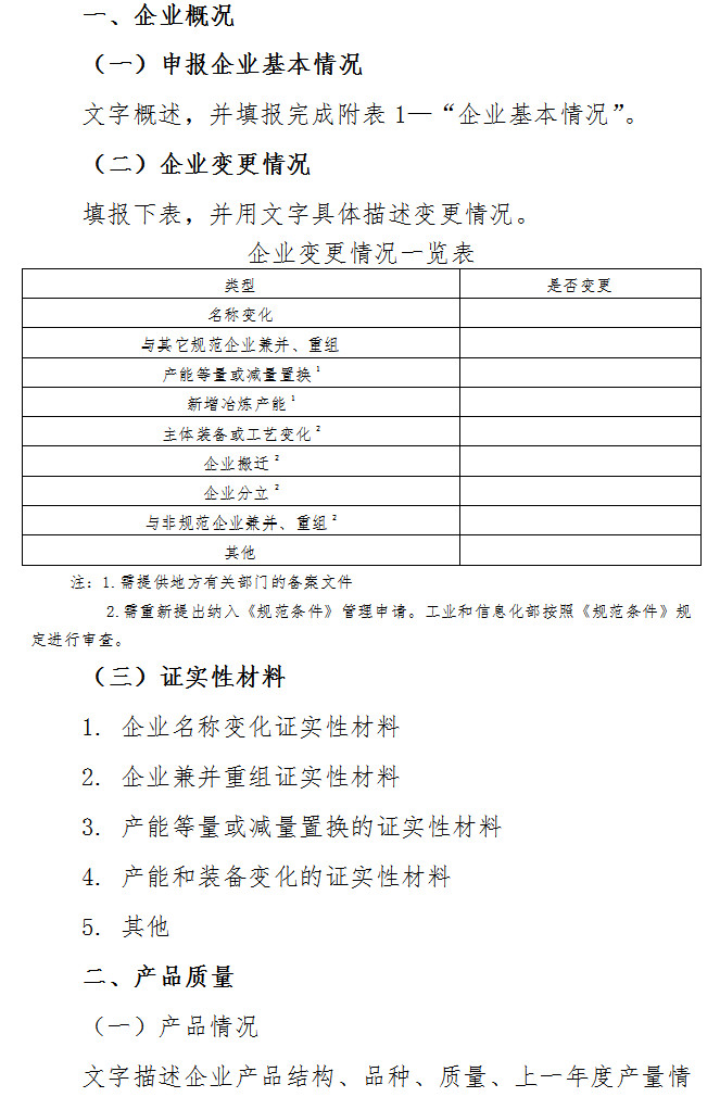 3.各省級工業(yè)主管部門負(fù)責(zé)接收本地區(qū)相關(guān)企業(yè)規(guī)范條件申請和初審,中央企業(yè)自審。初審或自審單位須按規(guī)范條件要求對申報(bào)企業(yè)進(jìn)行核實(shí),提出初審或自審意見,附企業(yè)申請材料一并報(bào)送工業(yè)和信息化部。