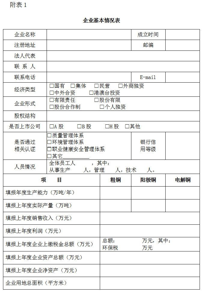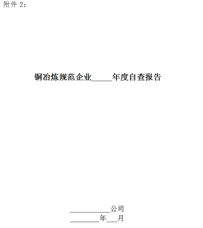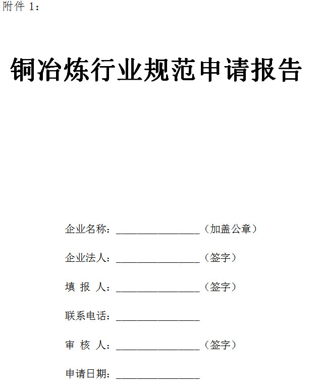 2.凡已建成投產(chǎn)1年以上(含1年)的銅冶煉企業(yè),均可依據(jù)《銅冶煉行業(yè)規(guī)范條件》申請審核。申請規(guī)范企業(yè)須編制《銅冶煉行業(yè)規(guī)范申請報(bào)告》(見附件1),并按要求提供相關(guān)材料,企業(yè)法人(或代表)、填報(bào)人和審核人須對申請材料的完整真實(shí)性負(fù)責(zé)并承擔(dān)相應(yīng)責(zé)任。