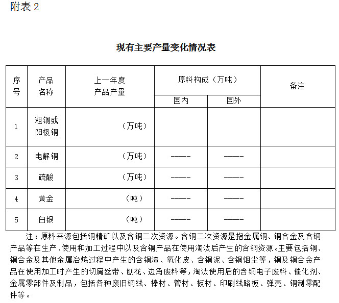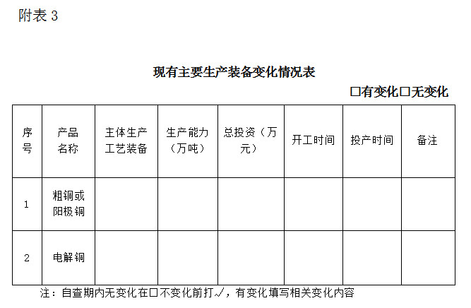 已公告的規(guī)范企業(yè)如發(fā)生重大變化(異地改造,原地改造且主體工藝發(fā)生變化)需提出變更申請,重新填報(bào)《銅冶煉行業(yè)規(guī)范申請報(bào)告》,經(jīng)地方工業(yè)主管部門核實(shí)后,上報(bào)工業(yè)和信息化部;中央企業(yè)直接上報(bào)工業(yè)和信息化部。工業(yè)和信息化部實(shí)時(shí)進(jìn)行變更公告。