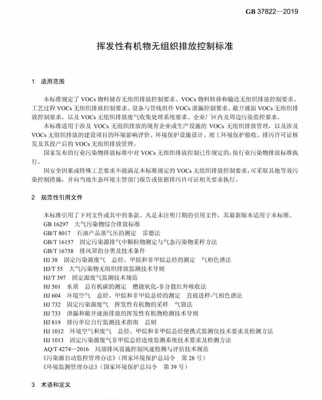 日前,環(huán)境部發(fā)布了《揮發(fā)性有機(jī)物無組織排放控制標(biāo)準(zhǔn)》(GB 37822—2019)。