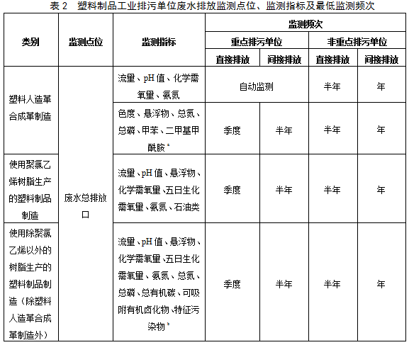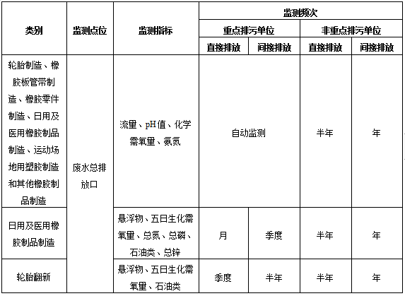 表1橡膠制品工業(yè)排污單位廢水排放監(jiān)測點(diǎn)位、監(jiān)測指標(biāo)及最低監(jiān)測頻次