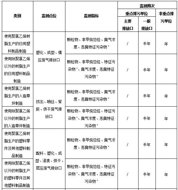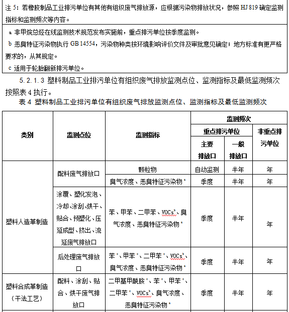 5.2.1.2橡膠制品工業(yè)排污單位有組織廢氣排放監(jiān)測點(diǎn)位、監(jiān)測指標(biāo)及最低監(jiān)測頻次按照表3執(zhí)行。