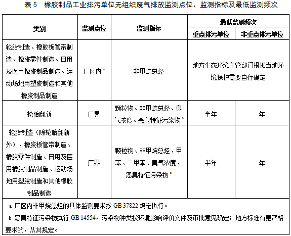 5.1.2 橡膠制品工業(yè)排污單位監(jiān)測指標(biāo)及監(jiān)測頻次