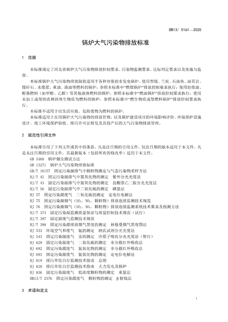 《鍋爐大氣污染物排放標(biāo)準(zhǔn)》DB13_5161-2020——2020.5.1實(shí)施
