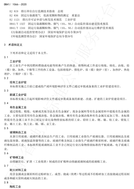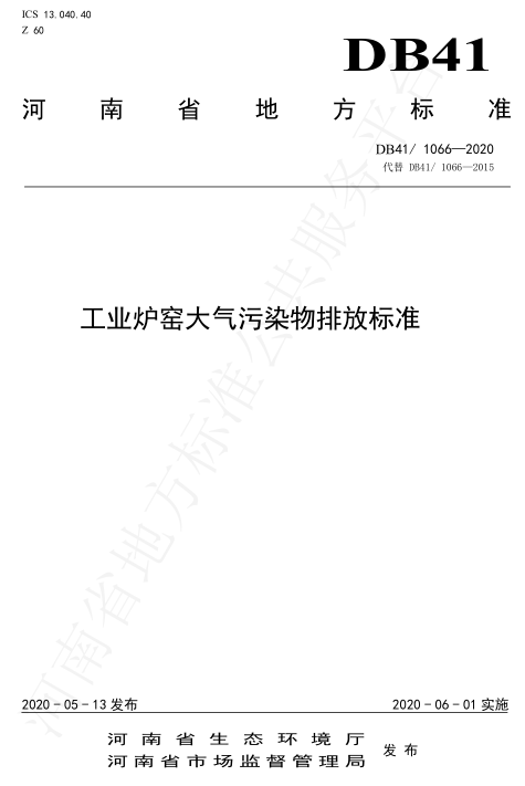 2020年4月10日,河南省市場監(jiān)督管理局、河南省生態(tài)環(huán)境廳在鄭州主持召開了地方標(biāo)準(zhǔn)審查會(huì),對河南2015年發(fā)布的(DB41/1066-2015)進(jìn)行了修訂。2020年5月19日,河南省市場監(jiān)督管理局以2020年29號公告批準(zhǔn)發(fā)布了新修訂的《工業(yè)爐窯大氣污染物排放標(biāo)準(zhǔn)》(DB41/1066-2020),2020年6月1日起實(shí)施。