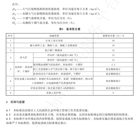 基準(zhǔn)氧含量(O2):耐火材料工業(yè)燒成窯:18/%;剛玉類工業(yè)熔煉爐、以電能轉(zhuǎn)換產(chǎn)生熱量的各類爐窯:按實(shí)測濃度計(jì);爐窯啟停階段(氧含量不低于19%的情形):按實(shí)測濃度計(jì)等。