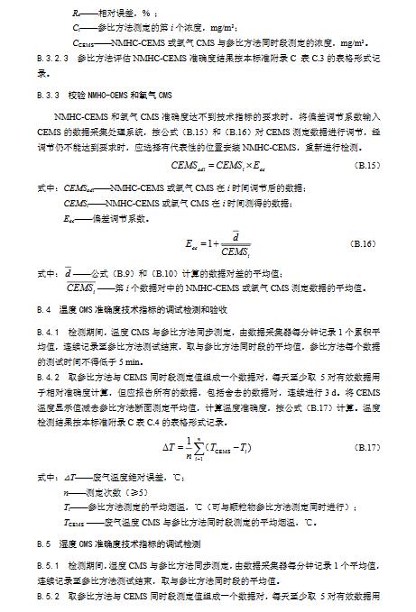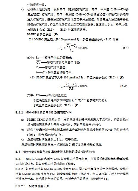 9.3.2.1非甲烷總烴技術(shù)指標(biāo)要求見本標(biāo)準(zhǔn)表1,操作步驟和計(jì)算公式按照HJ1013中7.2現(xiàn)場檢測要求和方法及本標(biāo)準(zhǔn)附錄B相關(guān)要求執(zhí)行。準(zhǔn)確度驗(yàn)收時(shí),待測NMHC-CEMS與參比方法同步對現(xiàn)場排放非甲烷總烴進(jìn)行測量。參比方法可選用HJ38,也可選用國家制訂發(fā)布的其它非甲烷總烴測試方法標(biāo)準(zhǔn)。