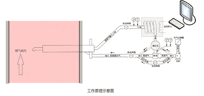 預(yù)處理模塊尾氣經(jīng)采樣探頭重新返回?zé)煹?。所需射流氣、吹掃氣均由潔凈風(fēng)機(jī)單元產(chǎn)生,吹掃氣 用于清潔煙塵儀的光學(xué)部件,確保系統(tǒng)長(zhǎng)期可靠工作。