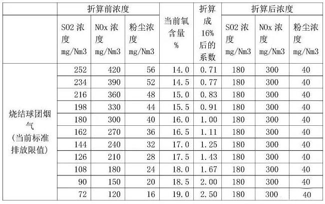 4)對于帶式焙燒機(jī)而言,濃度按氧含量16%折算并不科學(xué),因?yàn)閹奖簾龣C(jī)的排氣量包括了冷卻廢氣,而燒結(jié)機(jī)的廢氣并沒有包括環(huán)冷廢氣。帶式焙燒機(jī)應(yīng)該按18.5%折算為科學(xué)。