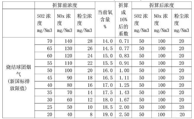 《鋼鐵燒結(jié)、球團(tuán)工業(yè)大氣污染物排放標(biāo)準(zhǔn)》(GB28662-2012)修改單規(guī)定的基準(zhǔn)含氧量,自2017年10月1日起執(zhí)行。根據(jù)編制說明,燒結(jié)和球團(tuán)焙燒煙氣基準(zhǔn)含氧量定為16%。則鋼廠燒結(jié)和球團(tuán)實(shí)測焙燒煙氣的大氣污染物排放濃度,應(yīng)換算為16%條件下的排放濃度,并以此作為判定排放是否達(dá)標(biāo)的依據(jù)。