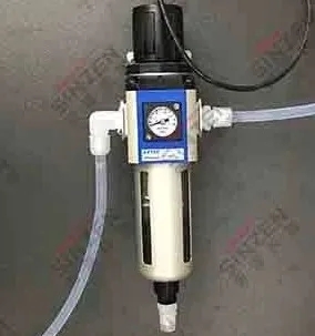 3、因壓縮空氣的品質(zhì)很差,含水含油很大,原先的空氣過濾器不能滿足過濾的要求,樣氣中含水率高與其也是有關(guān)系的,而且油份容易附著在探頭上造成積灰,影響抽氣量,嚴(yán)重時甚至無法抽下來空氣。因此我們在取樣探頭反吹壓縮空氣管道上加裝氣液分離器,該氣液分離器可以過濾掉壓縮空氣中的水份和油份,不讓探頭反吹時將壓縮空氣中的水和油吹入附著在取樣探頭內(nèi)。
