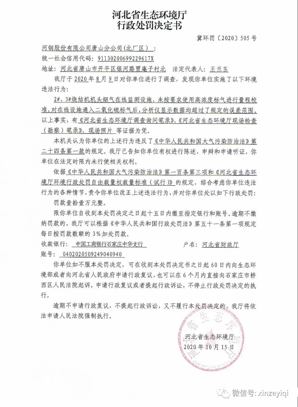 近日,河北省生態(tài)環(huán)境廳公開(kāi)了2020年執(zhí)法檢查中發(fā)現(xiàn)的幾起關(guān)于在線監(jiān)測(cè)行政處罰決定書(shū),從處罰決定書(shū)中看出多數(shù)是由于CEMS校準(zhǔn)或通標(biāo)氣測(cè)試不滿足技術(shù)指標(biāo)要求,其中二氧化硫全程通標(biāo)氣測(cè)試不滿足要求的情況尤為突出,以下是河北省生態(tài)環(huán)境廳對(duì)相關(guān)企業(yè)的行政處罰決定書(shū)。