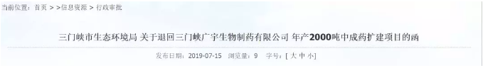 你公司報(bào)送的由河南省正德環(huán)??萍加邢薰窘鸪殬I(yè)資格證書編號(hào)0011352)編制的《三門峽廣宇生物制藥有限公司年產(chǎn)2000噸中成藥擴(kuò)建項(xiàng)目環(huán)境影響報(bào)告書(送審版)》(以下簡稱《報(bào)告書》)收悉。