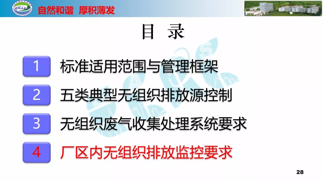 主要包括:標(biāo)準(zhǔn)適用范圍與管理框架、五類典型無組織排放源控制、無組織廢氣收集處理系統(tǒng)要求、廠區(qū)內(nèi)無組織排放監(jiān)控要求等四方面的內(nèi)容。