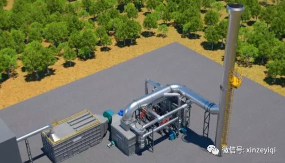 脫附風(fēng)機(jī)取轉(zhuǎn)輪排出凈化氣體一部分與RTO的熱氣做熱交換,溫度達(dá)到150~180℃,對(duì)沸石轉(zhuǎn)輪進(jìn)行脫附再生,脫附下來的氣體經(jīng)RTO風(fēng)機(jī)抽吸牽引進(jìn)RTO燃燒分解,脫附濃縮后的廢氣在RTO反應(yīng)裝置中被加熱至750℃以上,燃燒成為二氧化碳和水,排放至大氣。