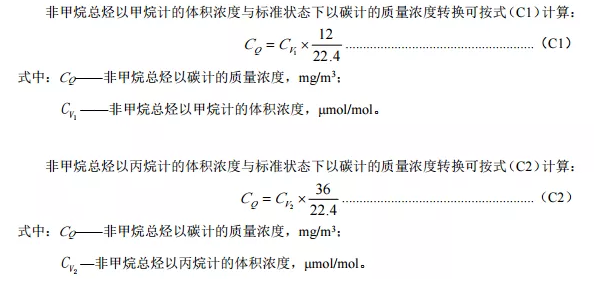 注:(1)以上各參數(shù)區(qū)間劃分以參比方法測量結(jié)果為準。(2)F.S.表示滿量程。(3)非甲烷總烴排放濃度單位換算按照如下公式換算