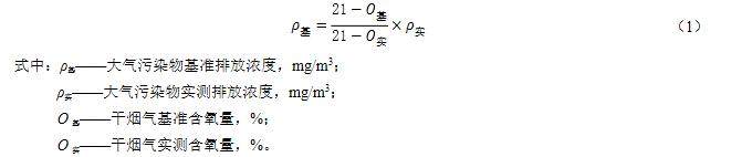 3 焦?fàn)t煙囪廢氣應(yīng)同時(shí)對(duì)排氣中氧含量進(jìn)行監(jiān)測(cè),實(shí)測(cè)排氣筒中大氣污染物排放濃度應(yīng)按公式(1)換算為基準(zhǔn)含氧量為8%的大氣污染物基準(zhǔn)排放濃度,并以此作為達(dá)標(biāo)判定依據(jù)。其他生產(chǎn)設(shè)施以實(shí)測(cè)排放濃度作為達(dá)標(biāo)判定依據(jù),不得稀釋排放。