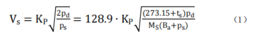 SVPT-100 型溫壓流監(jiān)測儀是基于傳統(tǒng)皮托管的差壓測量原理設計的。測量時,將“S”型皮托管插入管道中,并使皮托管的全壓和靜壓測孔中心軸線固定在過流斷面中心且與流線方向一致,全壓測孔正對氣流方向,同時靜壓測孔背對氣流方向。煙氣的流速與其動壓平方根成正比,根據(jù)測得某測點處的動壓、靜壓以及溫度等參數(shù),測點氣流速度 Vs 按式(1)計算