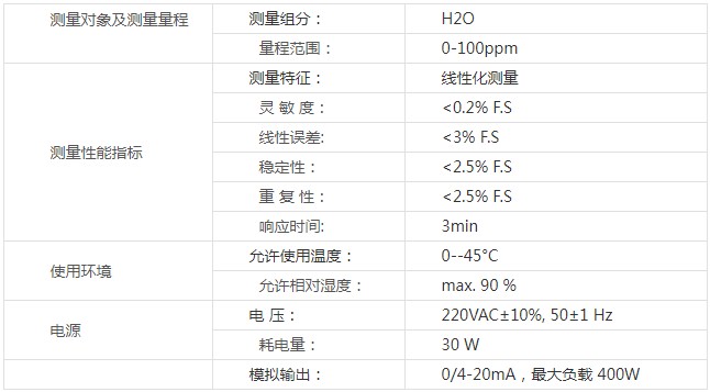 基本原理:傳感器采用五氧化二磷電解法原理,此傳感器由一個玻璃材質(zhì)的圓柱和兩根并行的電極(通常由鉑或銠金屬絲制成)組成,并在兩根電極之間涂有很薄的一層磷酸膜層。在兩電極間施加一直流電壓,氣體中的水分被作為吸濕劑的五氧化二磷膜層連續(xù)吸收,生成磷酸,并被電解為氫和氧,同時五氧化二磷得以再生。通過連續(xù)的電解過程,在樣氣的水分含量與電解后的水分之間建立平衡,電解電流與樣氣中水分含量成比例。